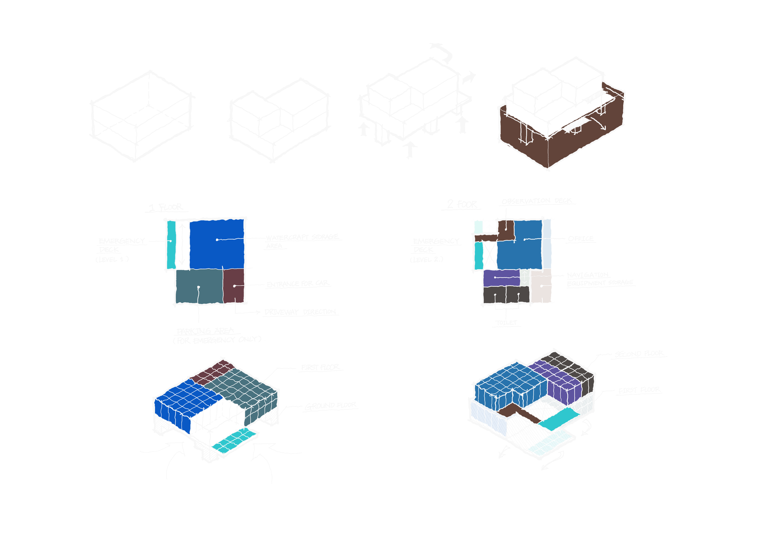 This project explores architectural design through the lens of combinatorics, focusing on St George's Field Car Park in York, England—an area frequently affected by flooding. The project investigates how different combinations can be effectively designed and implemented while addressing the challenges posed by the site's flooding issues. By integrating the water from the River Ouse into the building, the design creates a dynamic interaction between the structure and its environment. Early site visits provided insights into how residents cope with floods, informing the adaptive design of the building’s height and other features. Data collected during these visits was crucial in tailoring the design to local conditions.