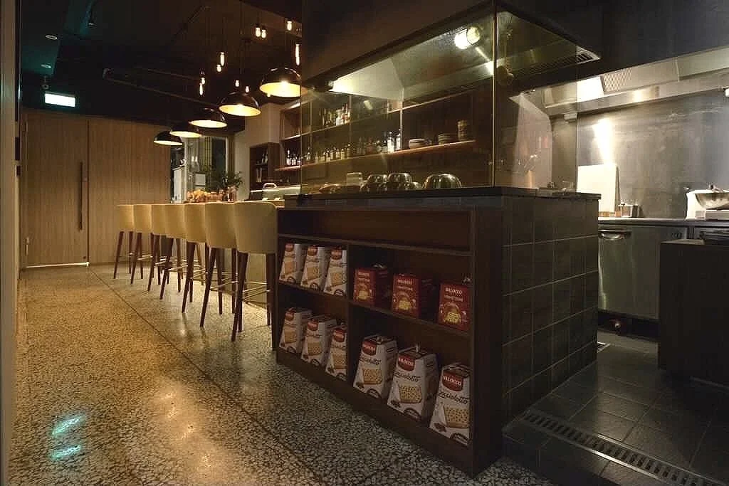 Isola, meaning 'island' in Italian, was conceived to transport guests into an island oasis. The space evokes the mystery of exploring an island forest, with uncertainty around every turn. The lighting fixtures were carefully designed to emulate the feeling of watching a sunset on the shores. I believe the warmth of the lights encourages appetite while promoting relaxation. Since the restaurant is open in the evenings, the ambient lighting mirrors the sunset hues that colour the city skies at that hour. My goal was to create a haven where urban dwellers could unwind after a long workday. The island atmosphere provides an escape from the stresses of daily life.
