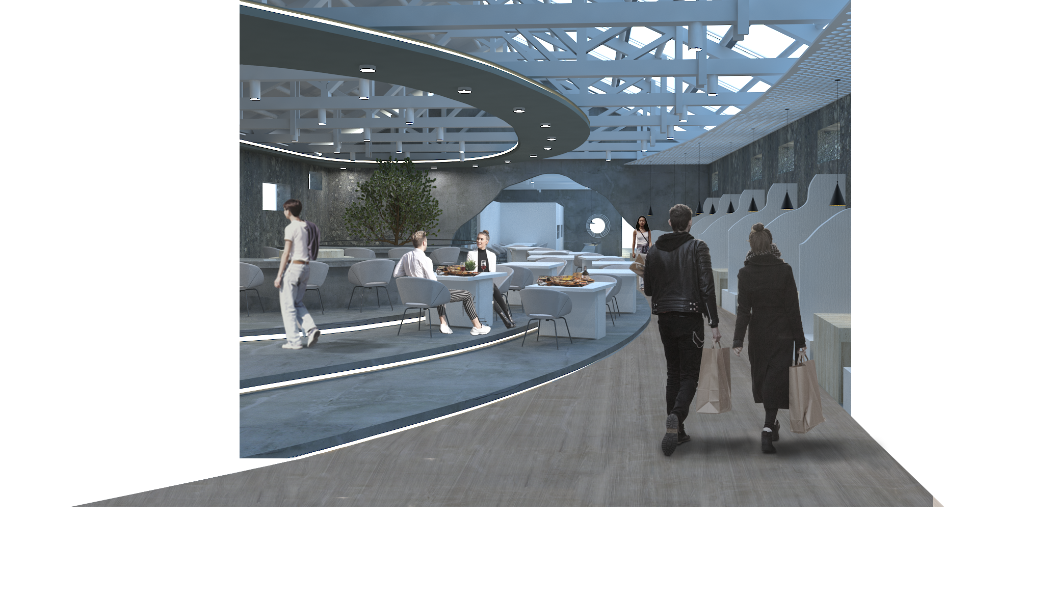 The process of buying and selling indicates the pattern of relationships among local people, bargaining and chatting become warm and vivid memories in the wet market. Walking through crowded markets, coming across familiar vendors, and giving friendly greetings to each other creates relationships which are irreplaceable. The design introduces the image of growth rings, which layer by layer, reveal the sign of the times in old buildings. The main concept is to gather people from outside and create strong links among each generation.