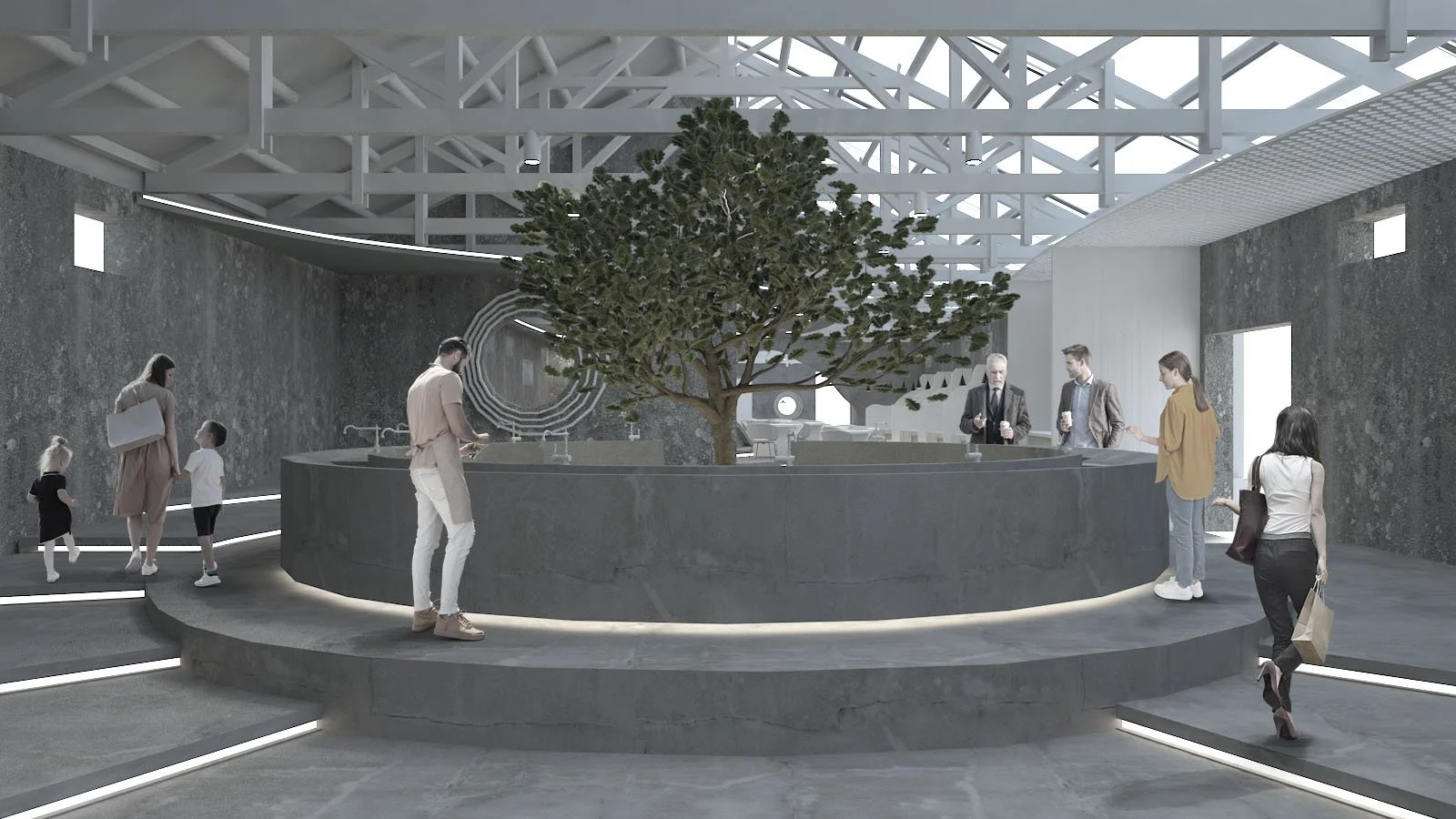 Each layer of the annual cycle represents a point in time during the growth. This process is also what we are doing now. Therefore, I designed the middle walkway as a stack of layers, indicating that each layer people walk through is a story.