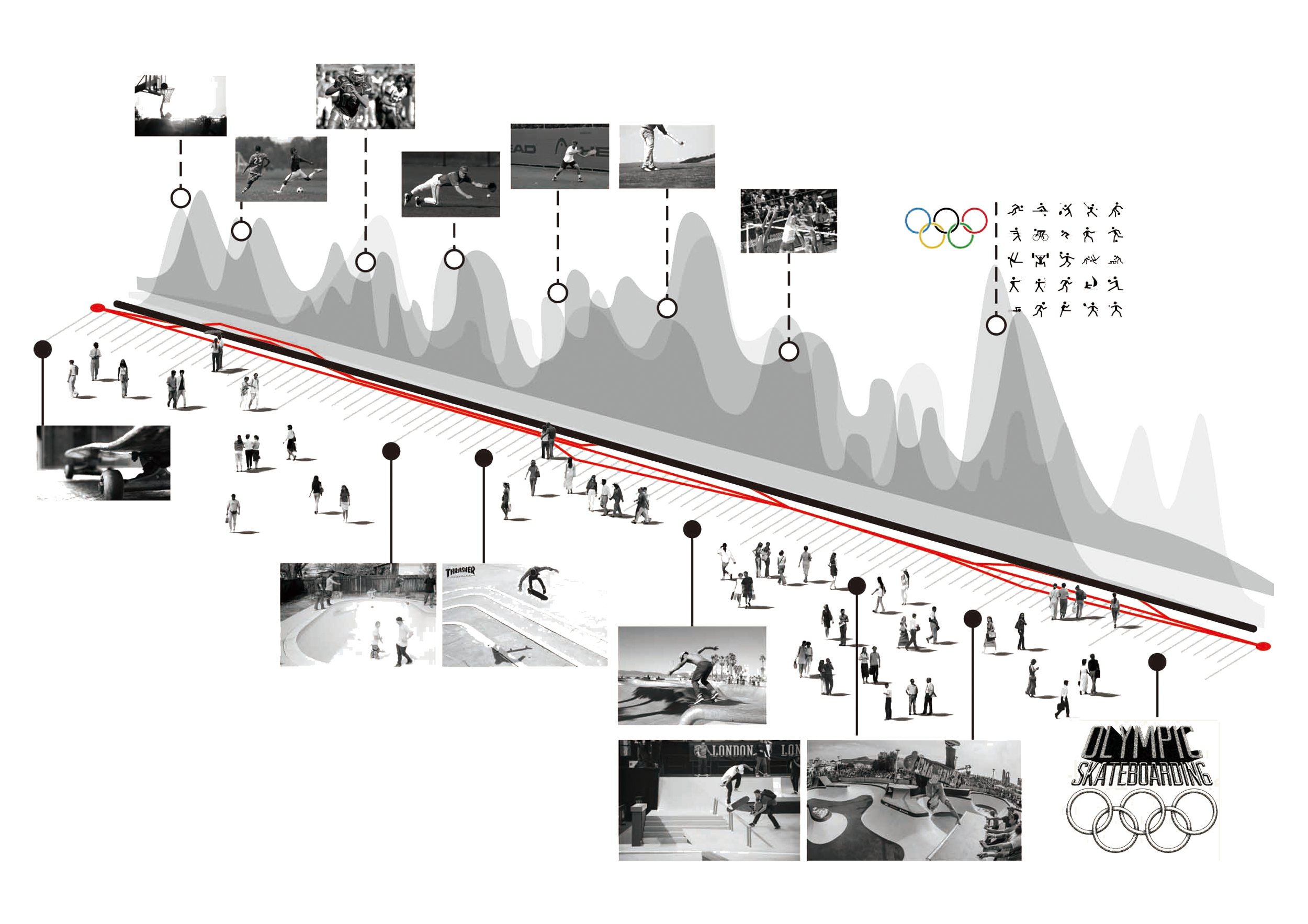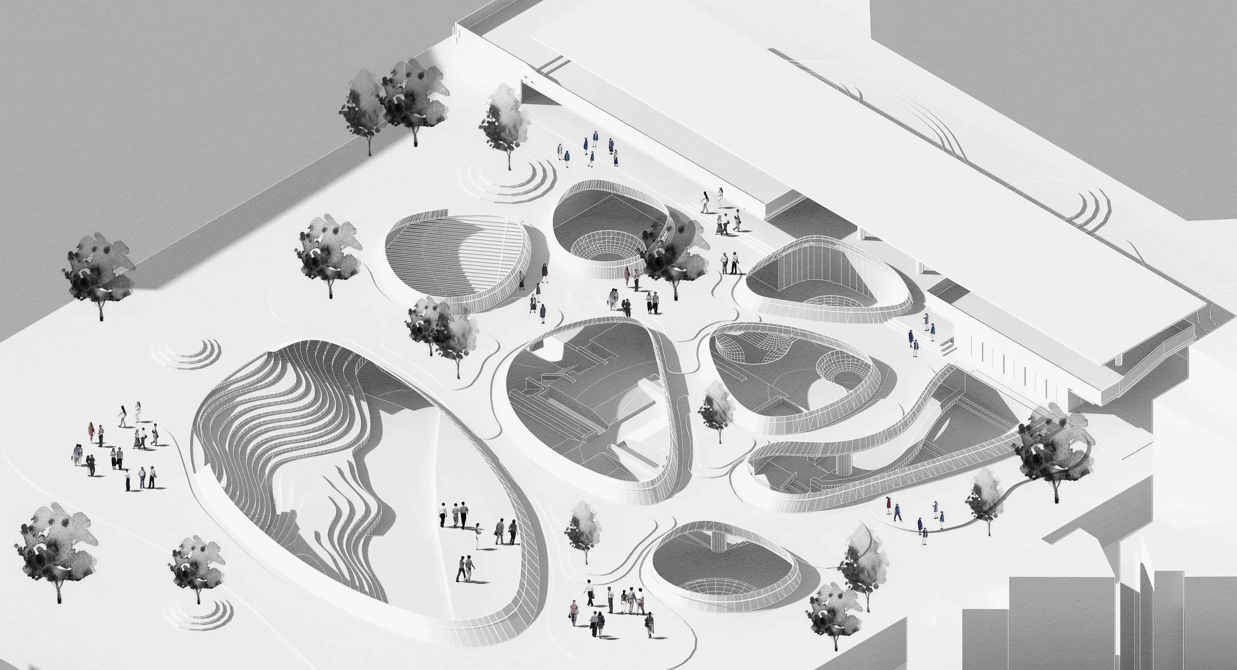 Skateboarding culture, which has flourished globally, originated from everyday life. Traditionally, urban planning has focused on the needs of children and older adults, often neglecting the younger demographic. This has led to a scarcity of open spaces where young people can express themselves. As architects, we recognize the importance of designing inclusive public spaces that cater to all age groups, fostering a deeper understanding and integration of diverse cultures within our urban environments. This project aims to address this gap by creating spaces that celebrate and accommodate the vibrant energy of youth culture.